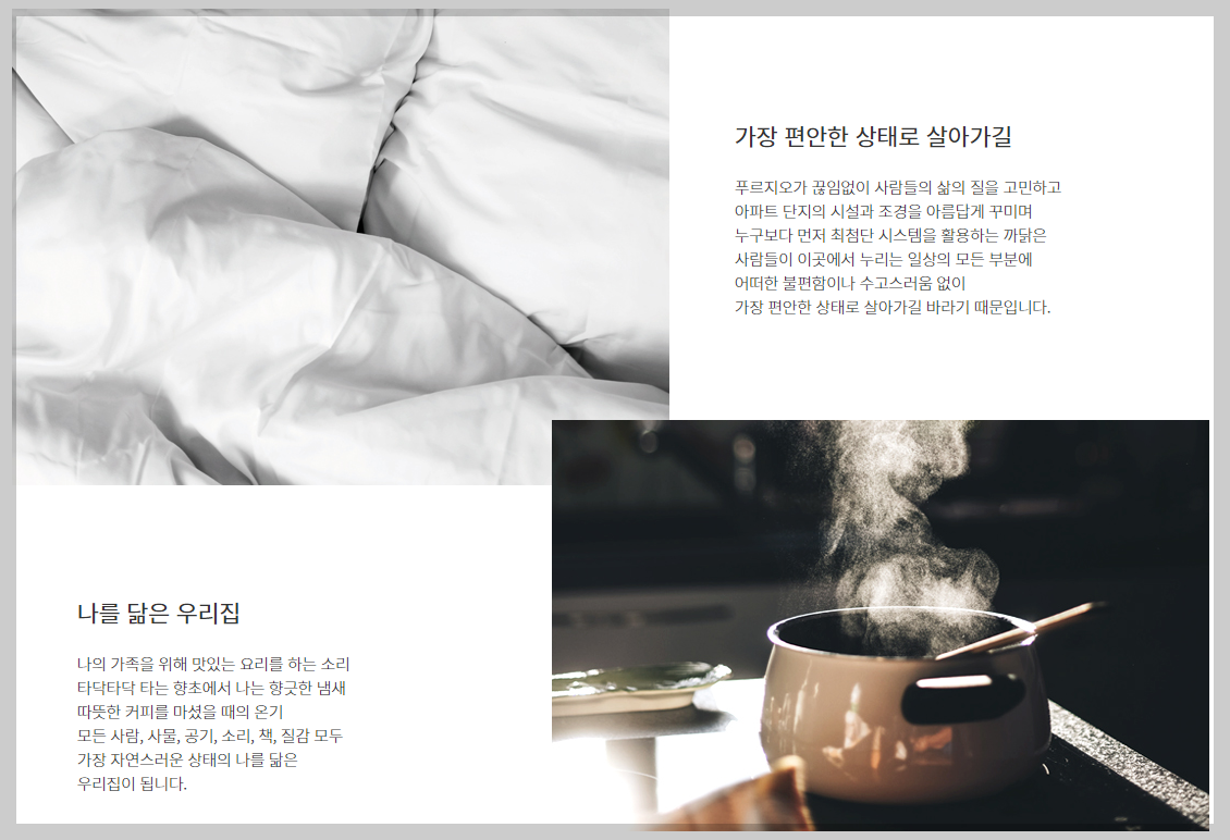 대다수 아파트가 고급스러운 브랜드 이미지를 강조하는 반면 높은 층고, 더 넓은 주차장 등 생활 편의성을 강조하는 브랜드입니다.