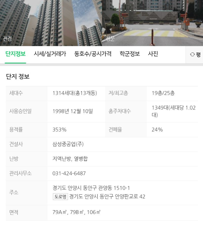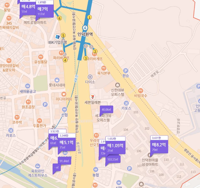 인덕원역에서 걸어가 보니 출퇴근으로 나쁘지 않은 거리긴 했습니다. 하지만 아무래도 위치적으로 인덕원마을 삼성아파트가 조금 더 선호되다 보니 형성된 가격대로 보입니다.