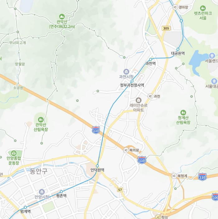 현재 인덕원역은 안양에 위치해 강남과의 지도상의 물리적 거리는 강남권이랑 가깝지만 철도를 이용하게 되면 4호선을 이용하다가 2호선으로 환승(사당역 환승) 해야 하는 단점이 있습니다.