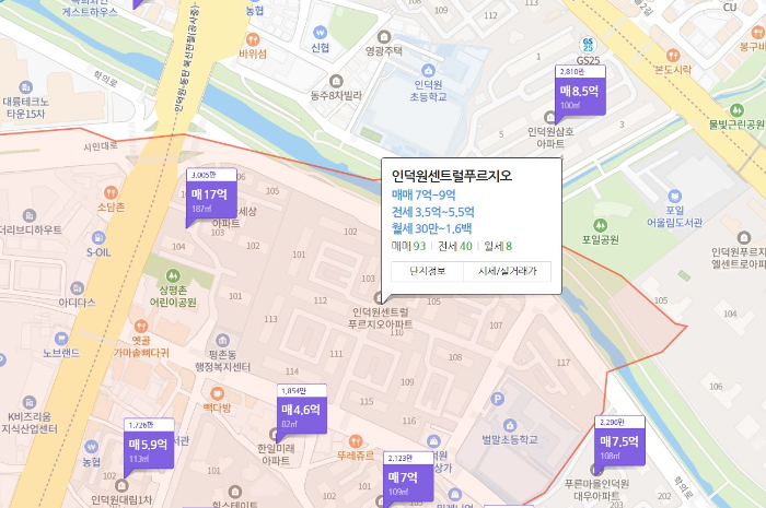 인덕원역에서 걸어가 보니 출퇴근으로 나쁘지 않은 거리긴 했습니다. 하지만 아무래도 위치적으로 인덕원마을 삼성아파트가 조금 더 선호되다 보니 형성된 가격대로 보입니다.
